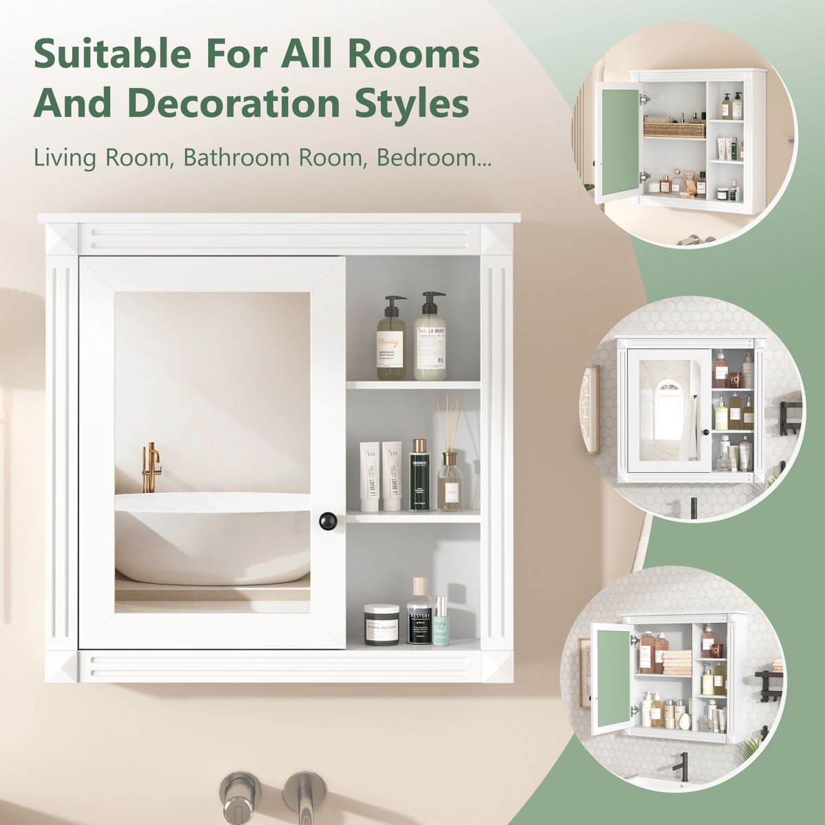 Bathroom Medicine Cabinet with Mirror, Wall Mounted Mirror Cabinet with Storage Organizer, Over the Toilet Storage White Storage Cabinet for Bathroom