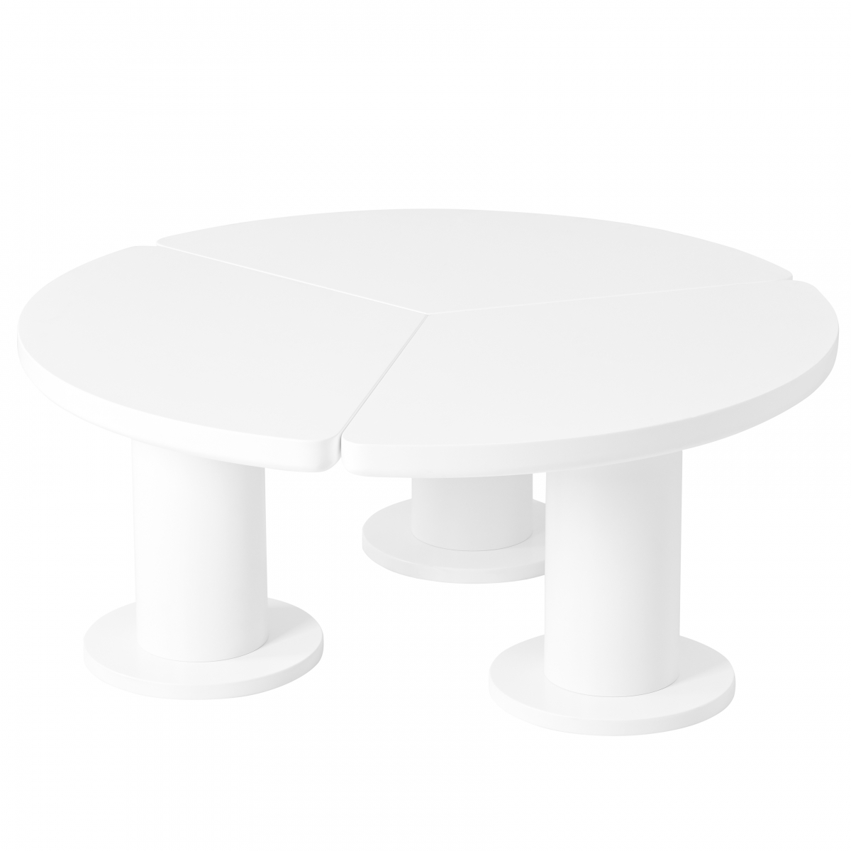 - This distinctive center table, featuring a diameter of 39.4 inches, boasts a sleek and minimalist design that seamlessly integrates into various environments. Perfectly suited for the living room, dining room, bedroom, as well as workspace.