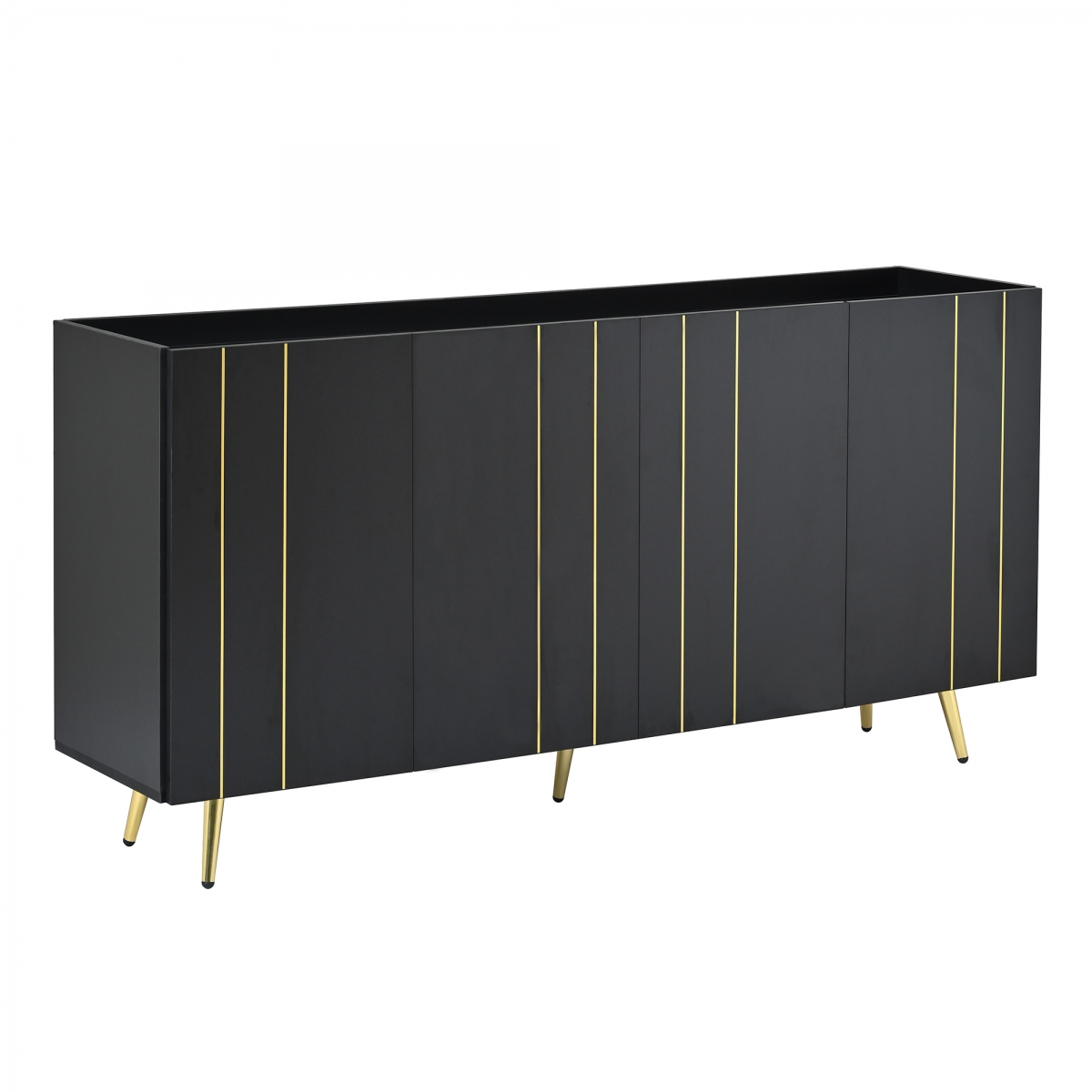 ON-TREND Luxurious Shoe Cabinet with 5 Metal Legs, Modern TV Stand with 4 Adjustable Shelves for TVs Up to 70 Inch , Minimalist Sideboard Cabinet with Gold Lines Doors for Living Room,62.9 Inch x 31.4 Inch ,Black