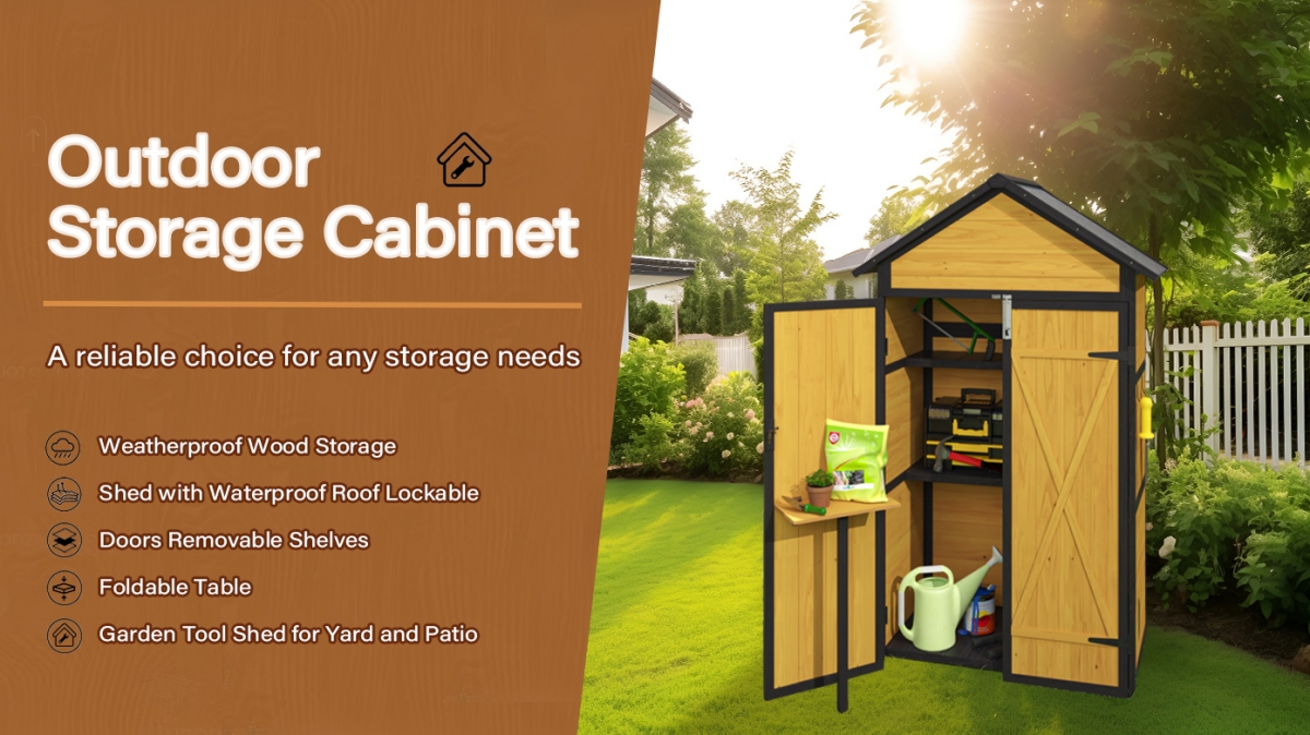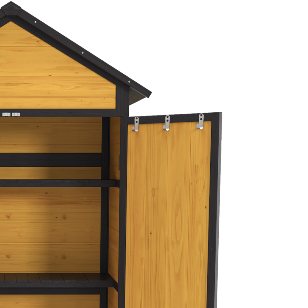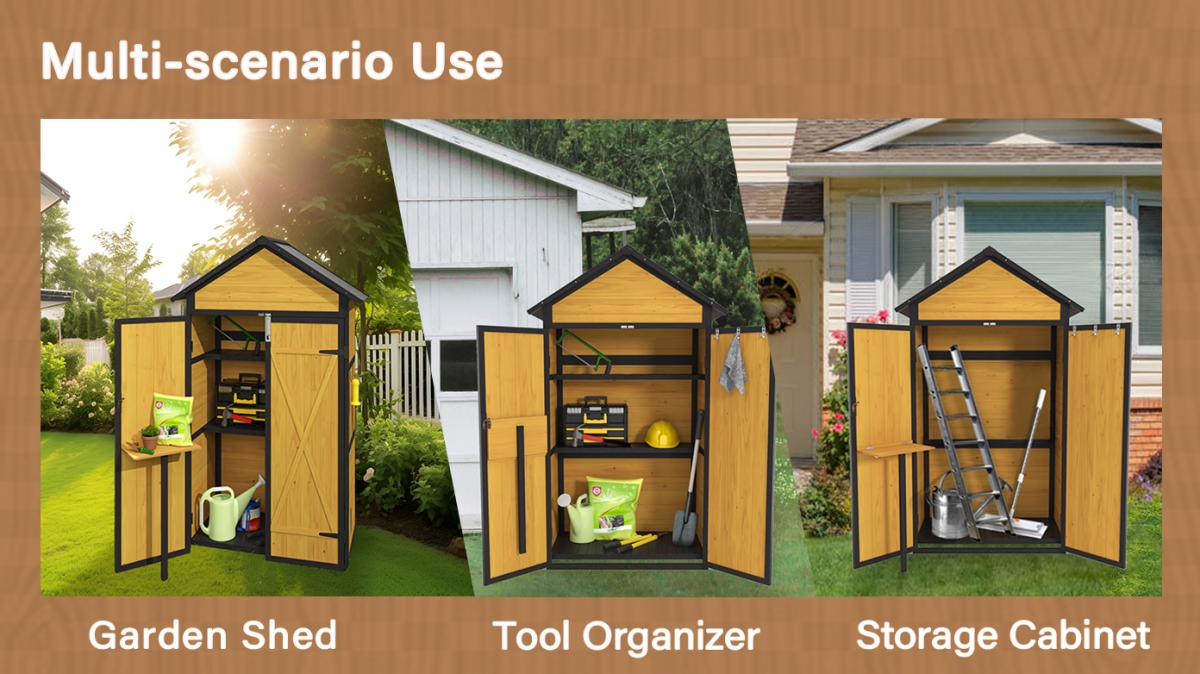- 【Strong and Stable Structure】 Our garden tool shed is made of high quality fir wood and with its durable construction you can use it for years to come. In addition, we also added four metal brackets to make our tool cabinets more stable to the ground.
