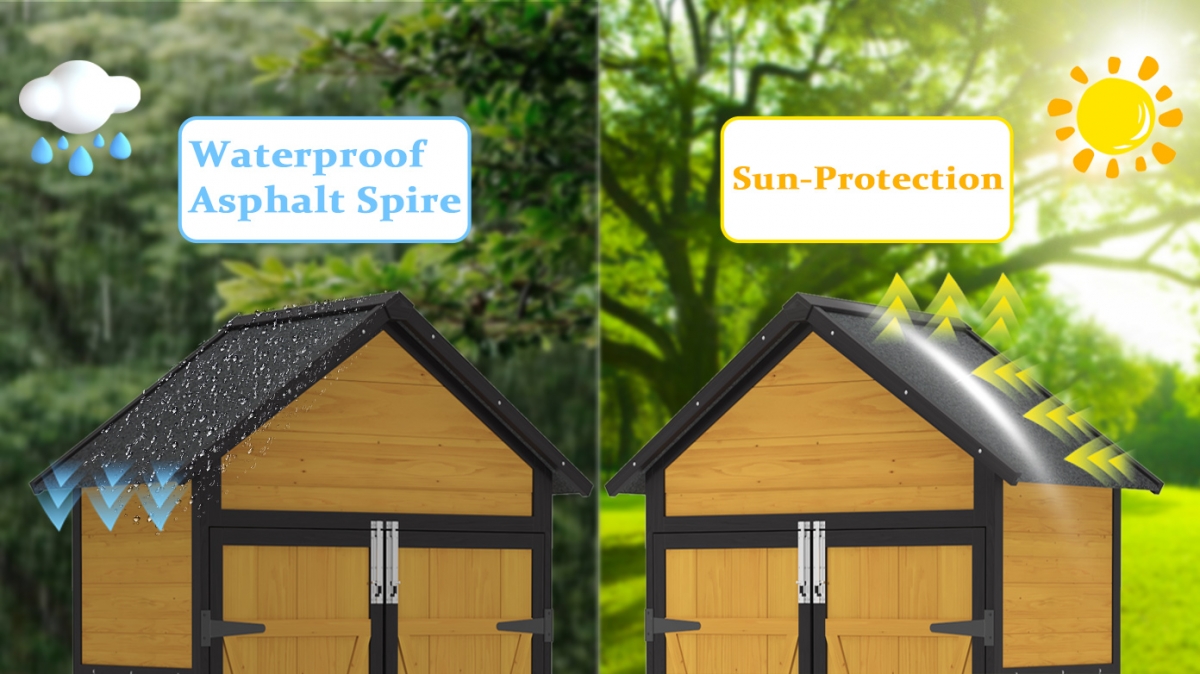 - 【Waterproof Roof】 The outdoor storage shed has a waterproof roof, roof slope design, effectively prevent water accumulation, can withstand any outdoor environment and ensure dry and safe storage in the tool shed.