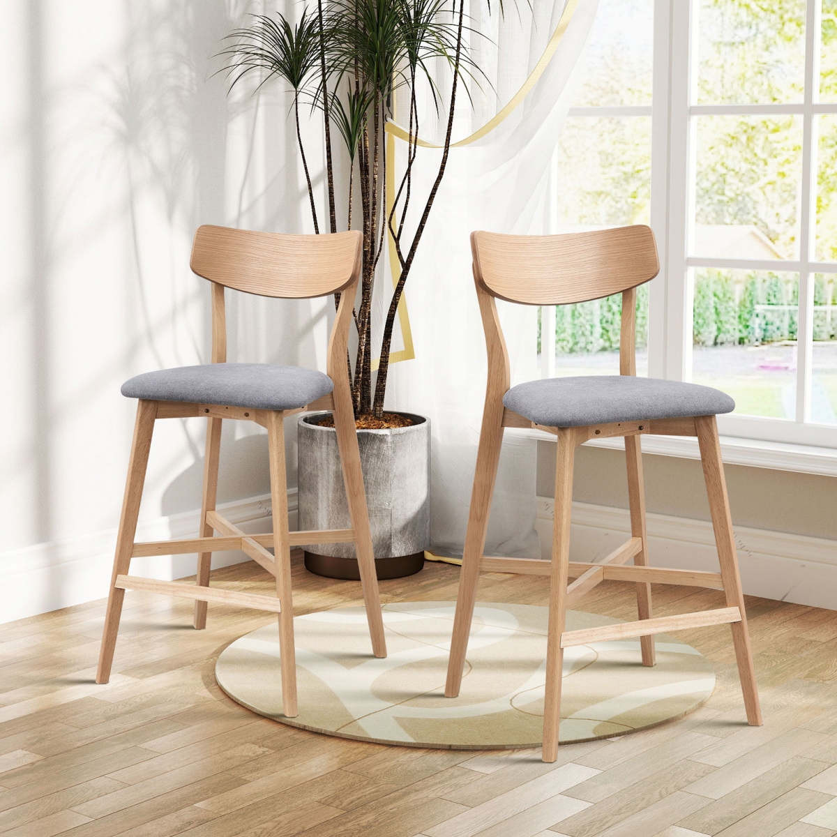 Wooden Bar Chairs Set of 2, Modern Soft Upholstered Kitchen Island Chairs, Counter Height Stool with Backrest,Wooden Frame Chairs with Footrest for Pub,Living Room,Restaurant,OAK
