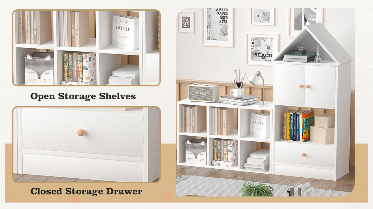 - Ample Storage: Features multiple open shelves and a closed cabinet, providing plenty of space to store books, toys, and other essentials.