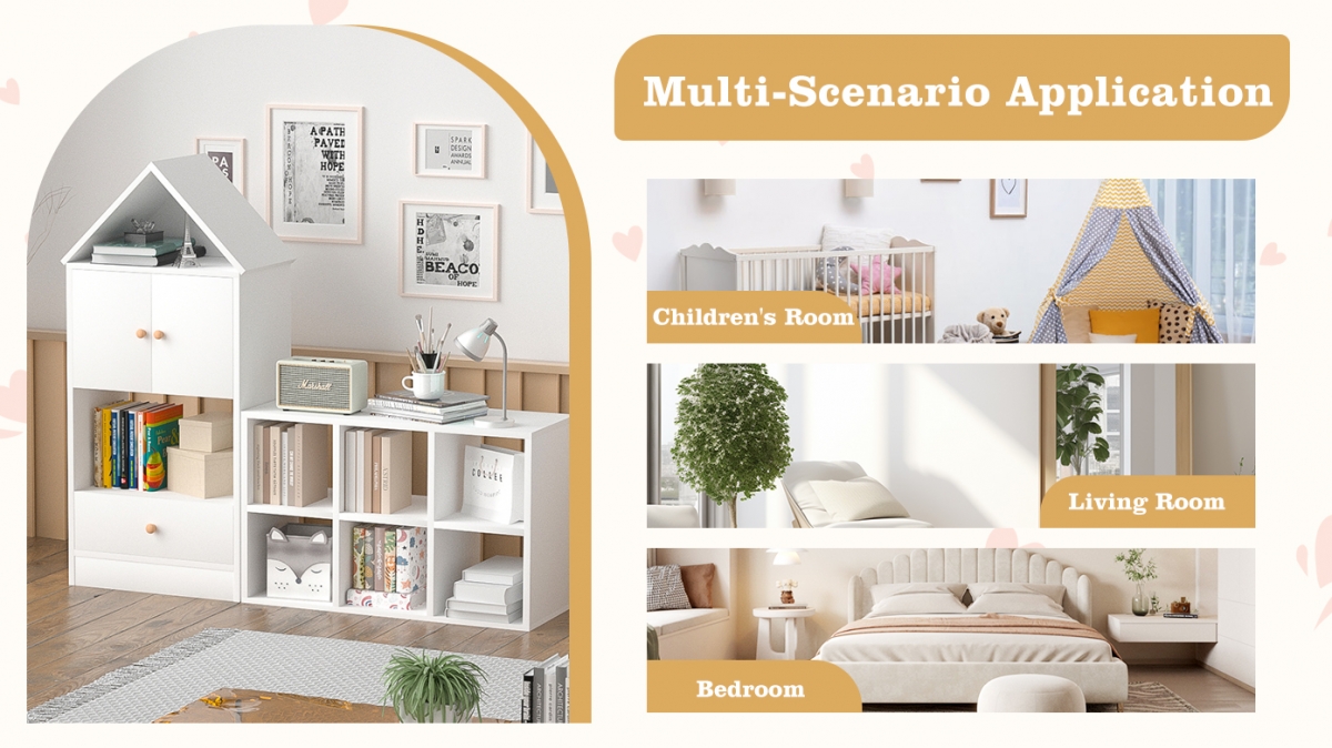 Versatile Children's Bookshelf with House-Shaped Design, Multi-Functional Storage for Books and Toys, Adjustable Placement, Durable Kids Organizer for Playroom or Bedroom Easy Assembly & Safe for Kid