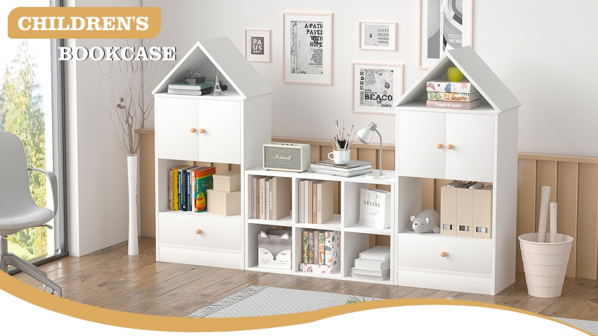 Versatile Children's Bookshelf with House-Shaped Design, Multi-Functional Storage for Books and Toys, Adjustable Placement, Durable Kids Organizer for Playroom or Bedroom Easy Assembly & Safe for Kid