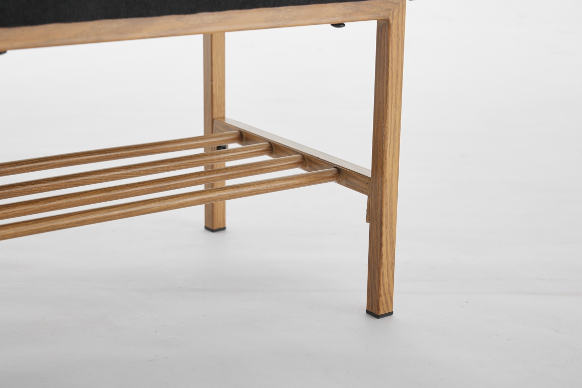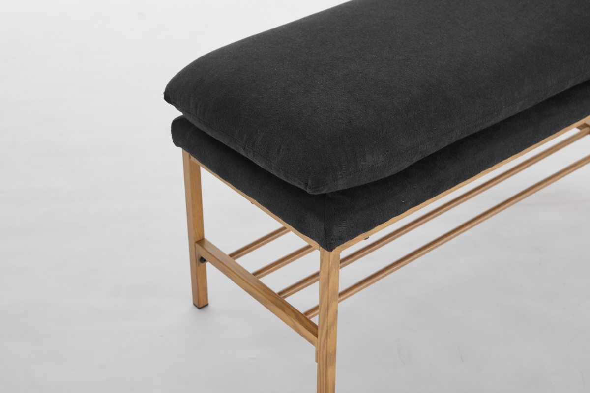End of Bed Bench with Shelf, Linen Upholstered Storage Shoe Bench, Modern Bedroom Bench with Metal Legs for Living Room, Entryway, Dining Room, 300 LB, Linen Color(Black)