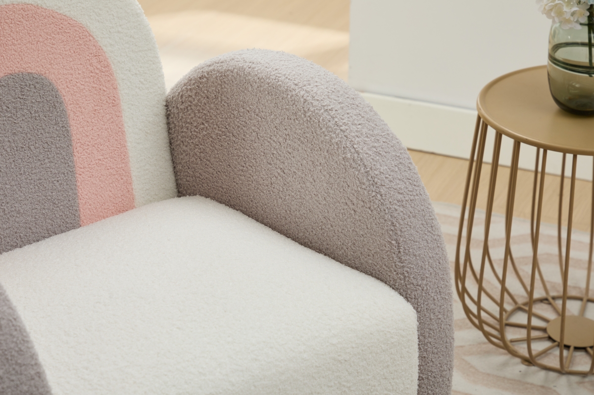Accent Chair Sofa, Toddler Fabric with Solid Wooden Frame,Rainbow Design