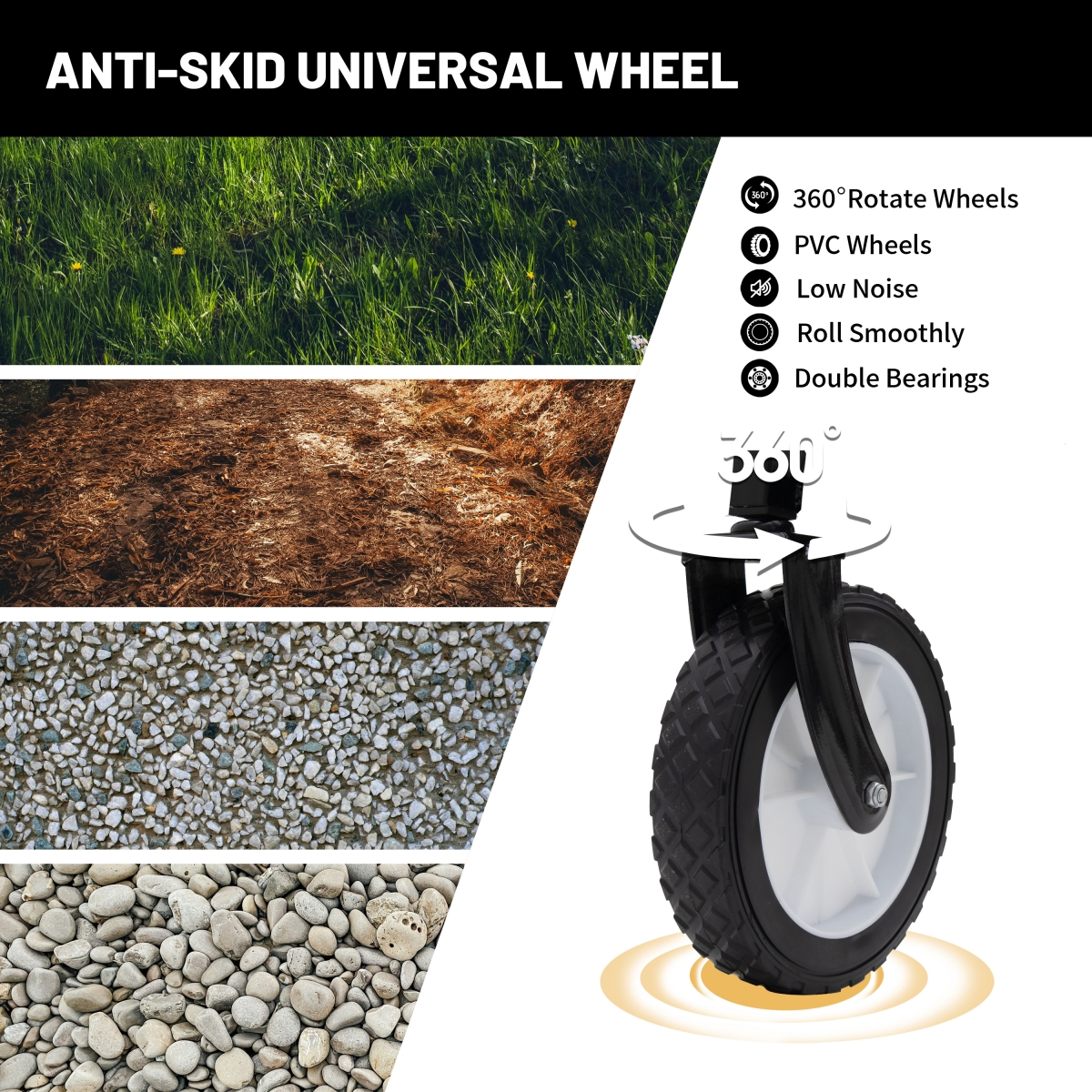 - All-Terrain 360-Degree Swivel Wheels: Equipped with 7-inch wheels that can rotate 360 degrees, this cart is perfect for navigating various terrains, making it easy to maneuver on any surface.