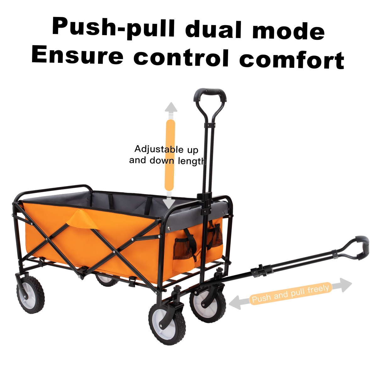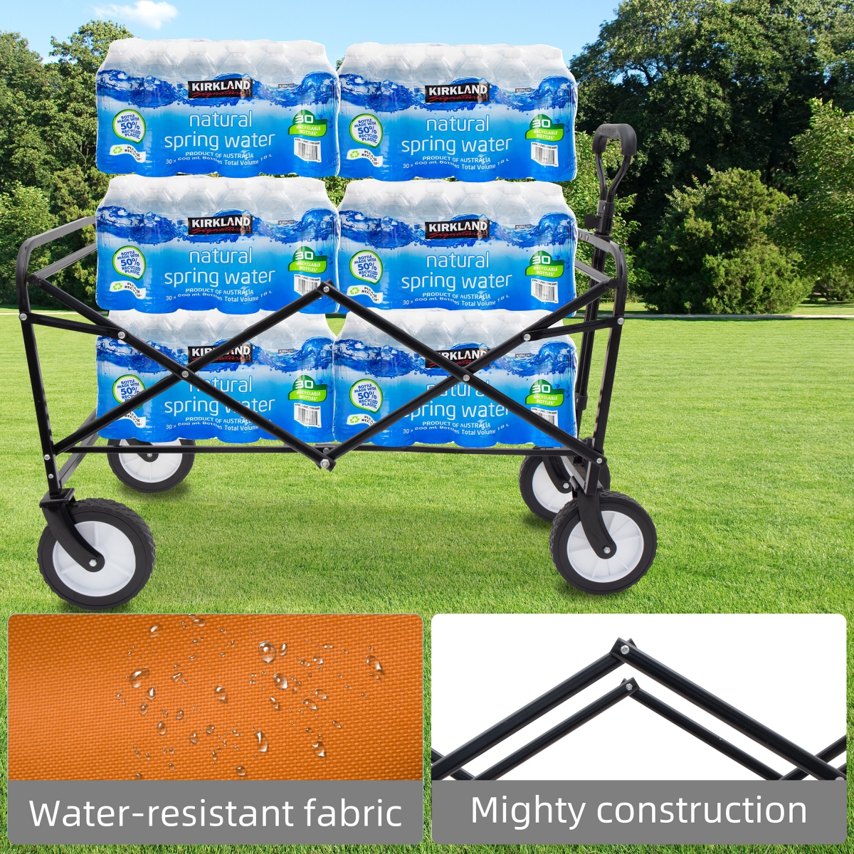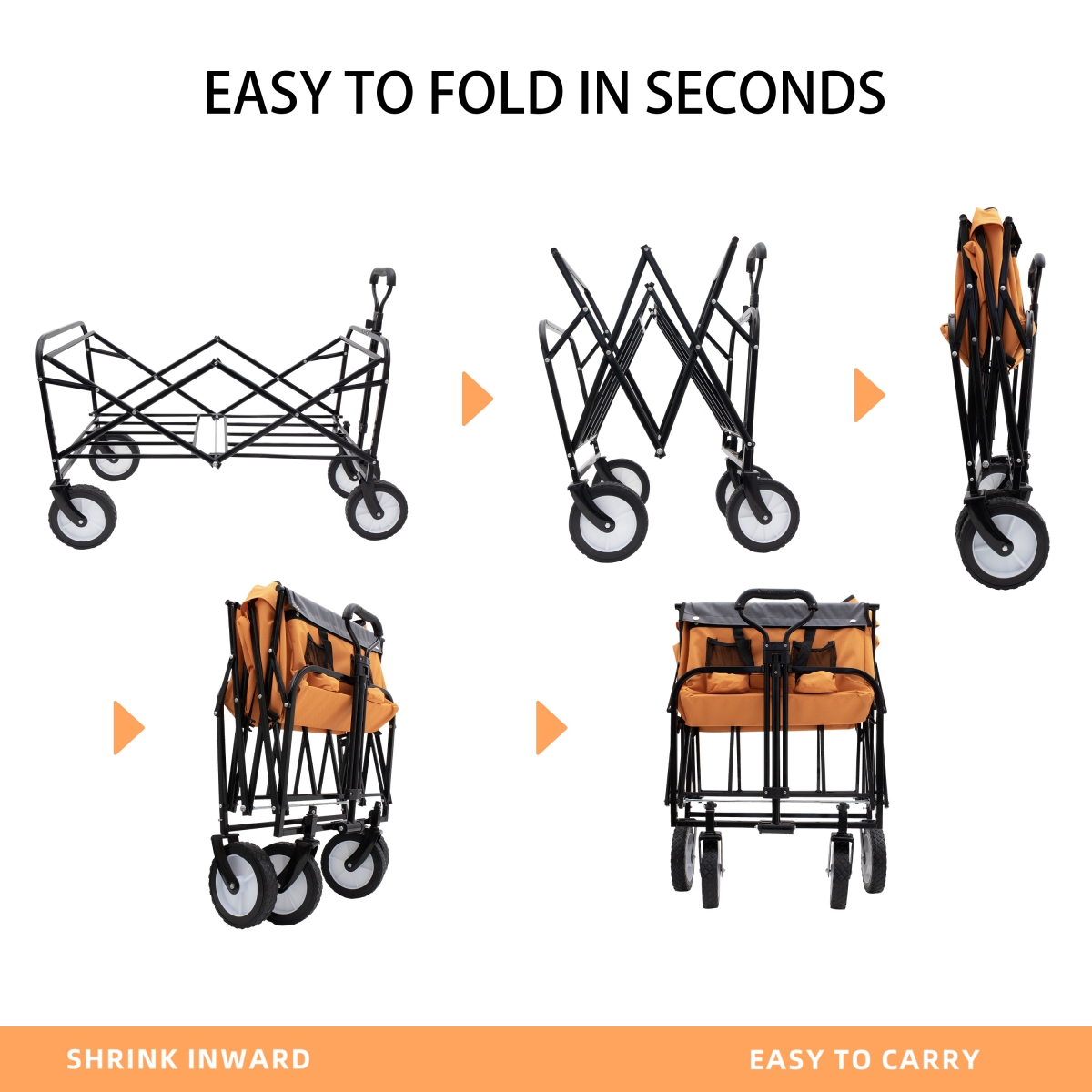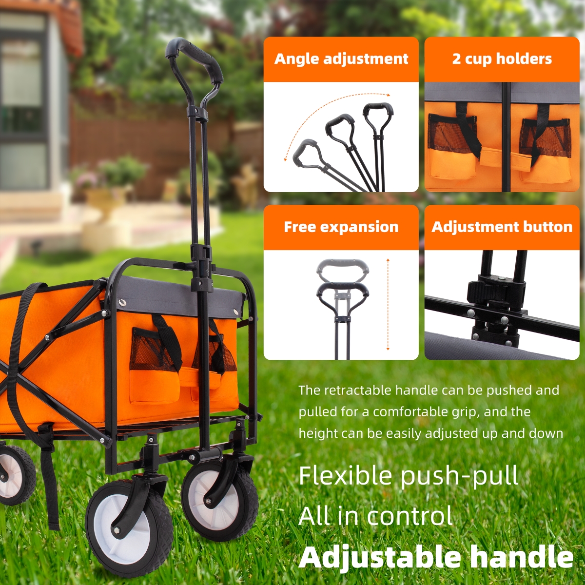 Collapsible Foldable Wagon Cart with strapping system Beach Wagon Utility Cart Utility Wagon Grocery Cart for for Camping Shopping Sports Gardeing Fishing Supports 225lbs All-Terrain Wheels orange