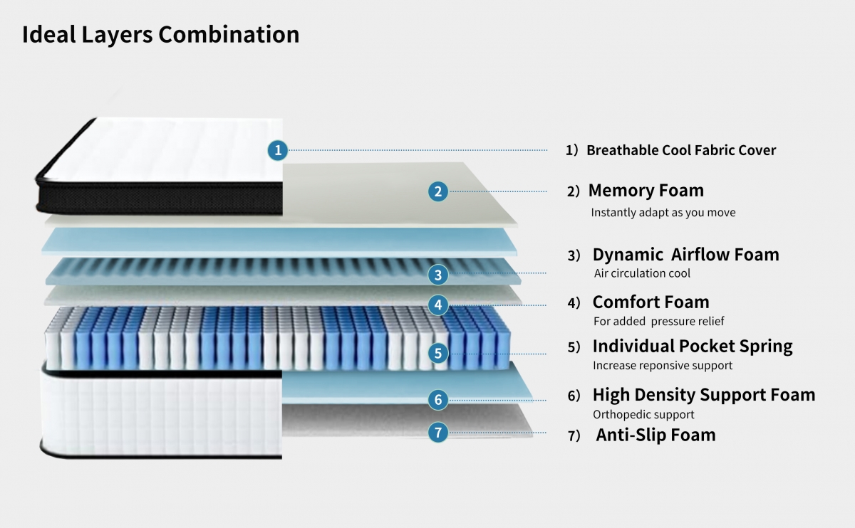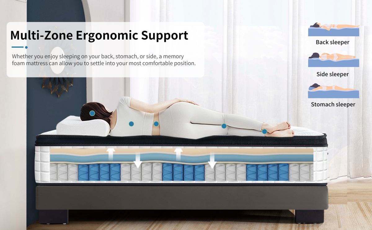 Twin Size 12 Inch 7-Zoned Cool Memory Foam Individual  Pocket Spring Hybrid Mattress