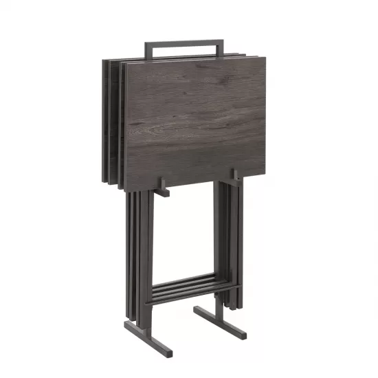 Folding Office Table TV Tray Tables Set of 4 TV Trays with Storage Stand Rack Wood Folding TV Tray Foldable Snack Table for Small Space Rustic Grey