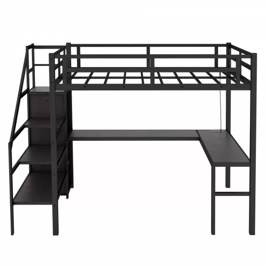If you need a versatile bed, then our metal loft beds are the perfect choice. The upper bed provides you with plenty of sleeping space, and the desk below is the perfect area to work and study. In addition, the twin xl size loft bed comes with a built-in closet that can be used for storing your daily clothes and supplies, and the interchangeable left and right staircases allow for storage while keeping it sturdy. The USB and LED lights are designed to provide you with great convenience. Quality metal materials and a minimalist black design make this loft bed an eye-catcher in the bedroom.