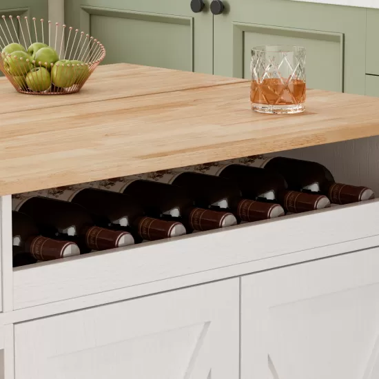 - 【Reliable & Stable】- Made of premium MDF board & solid wood tabletop to ensure healthy kitchen & dining room environment; Thickened engineered wood countertop with smooth finish is easy to clean and scratch resistant, which can be used as a cutting board or microwave oven & roaster stand; Weight Capacity up to 150 LBS without wobbling.