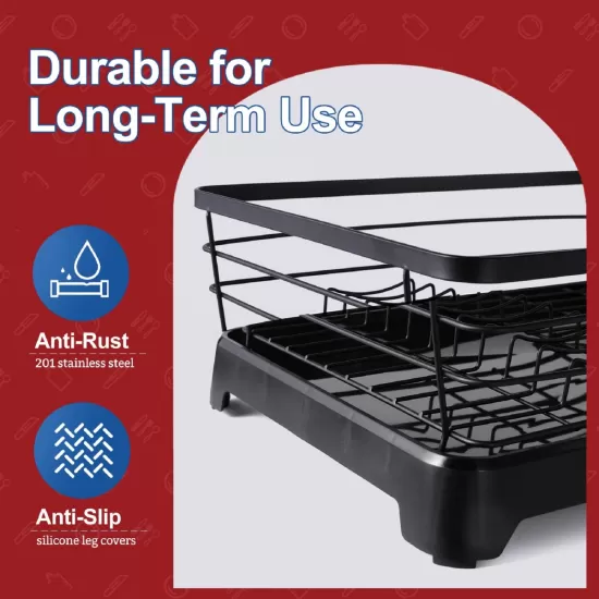 Stainless Steel Rust-Proof Dish Drying Rack with Tray - Space-Saving, Anti-Slip, & Removable Utensil Holders for Kitchen Countertop & Cabinet