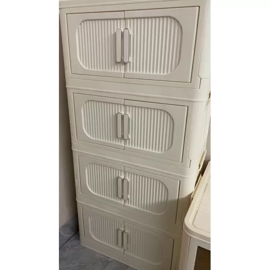 Cream White 19.69 Inch Side Wide Folding Storage Cabinet ,3 Tiers,19.69 Inch ×11.81 Inch ×31.1 Inch ,Collapsible Storage Bins with Magnetic Door, Plastic Storage Cabinet with Wheels