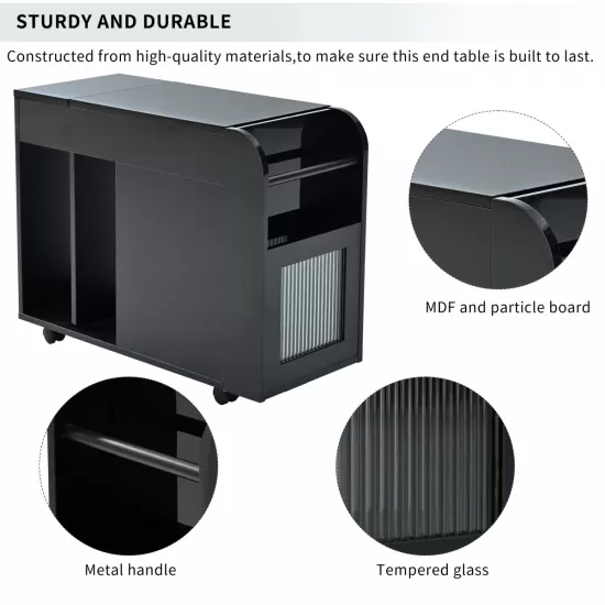 Designed with meticulous attention to detail, this end table combines versatility, style, and convenience in one. With its hidden and open storage solutions, easy mobility, and durable construction, it addresses a wide range of needs while enhancing the decor of any contemporary living room, bedroom, or office space. Whether for storage, display, or simply as a beautiful accent piece, this end table offers a blend of utility and style that is hard to match.